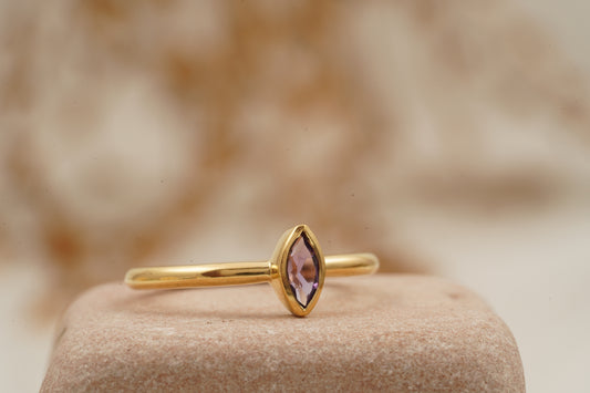 Bezel Set Dainty Marquise Alexandrite Stacking Ring For Women