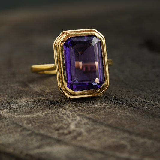 Large Alexandrite Bezel Set Engagement Ring 14K Yellow Gold