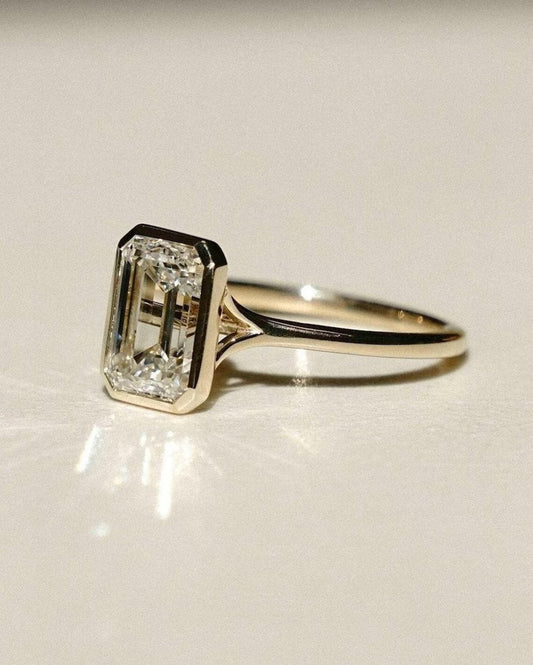 3 CT Emerald Cut Moissanite Engagement Ring Bezel Set Wedding Rings
