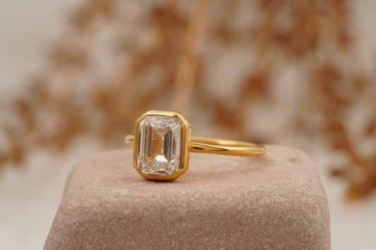 Emerald 1.5Ct Bezel Moissanite Engagement Ring