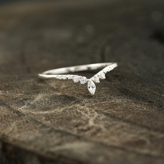 Marquise Opal Curved Wedding Band, October Birthstone, 14k Rose Gold Ring