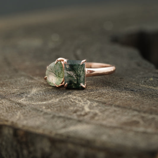 Toi Et Moi Moss Agate Emerald & Pear Cut Ring