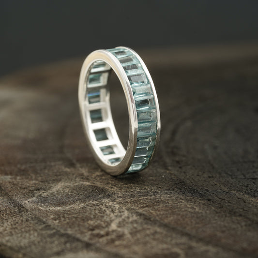 Baguette Cut Topaz Wedding Ring Gemstone Channel Set Birthstone Wedding Band