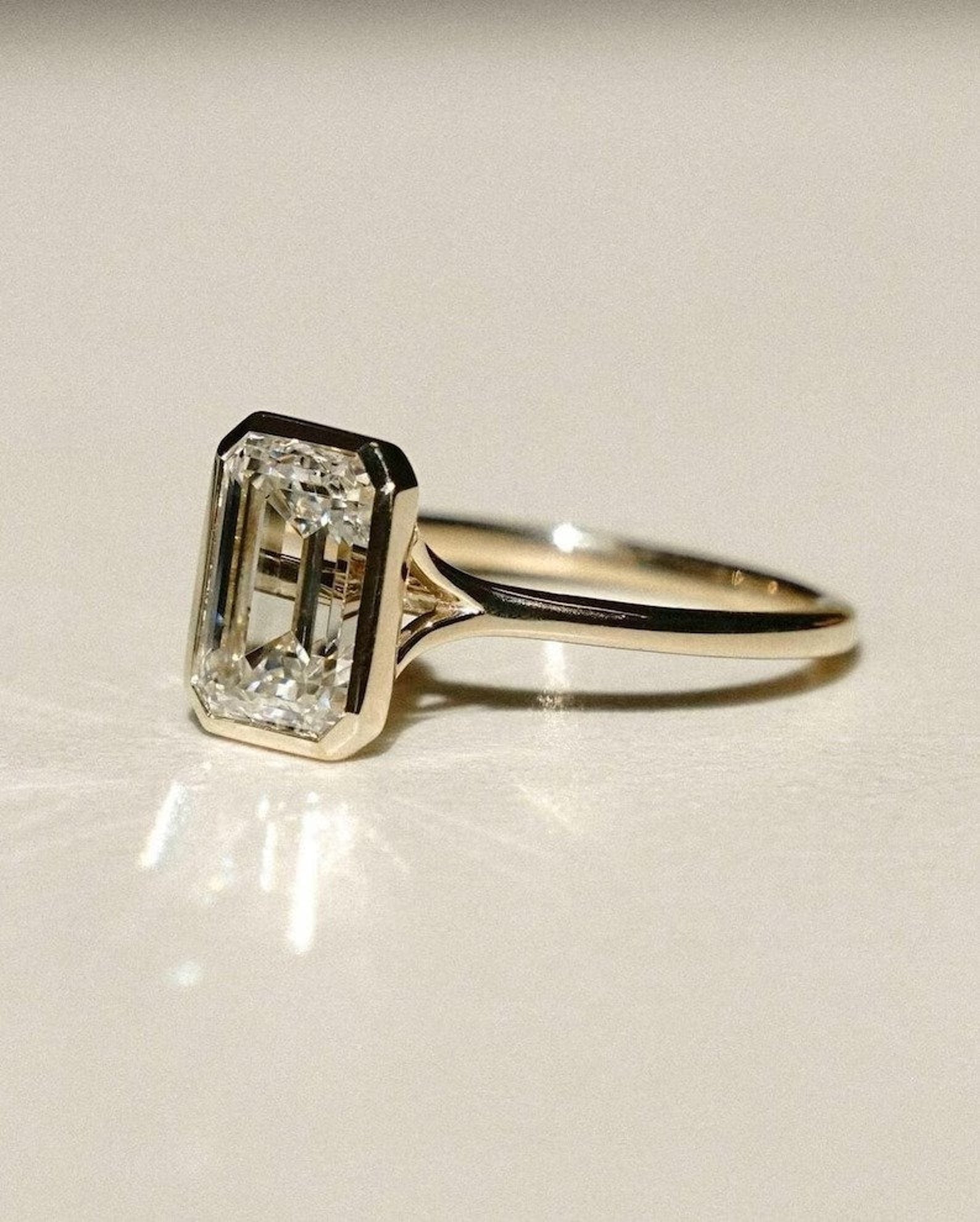 Buy 3 CT Emerald Cut Moissanite Engagement Ring Bezel Set Wedding Rings Fashion & Traditional Jewellery Online