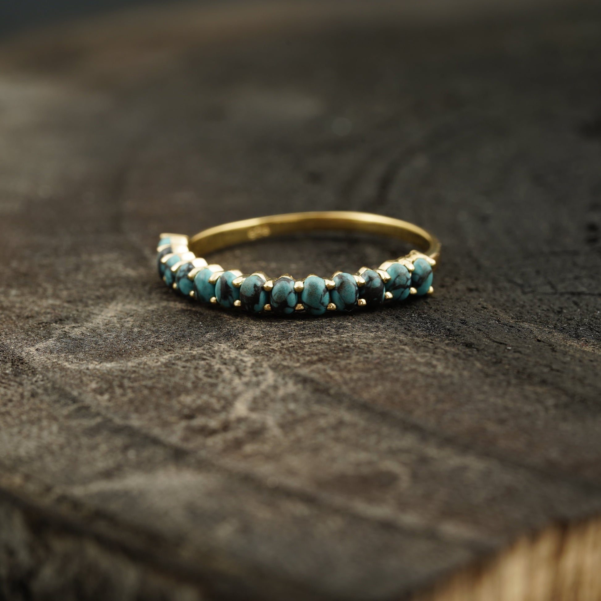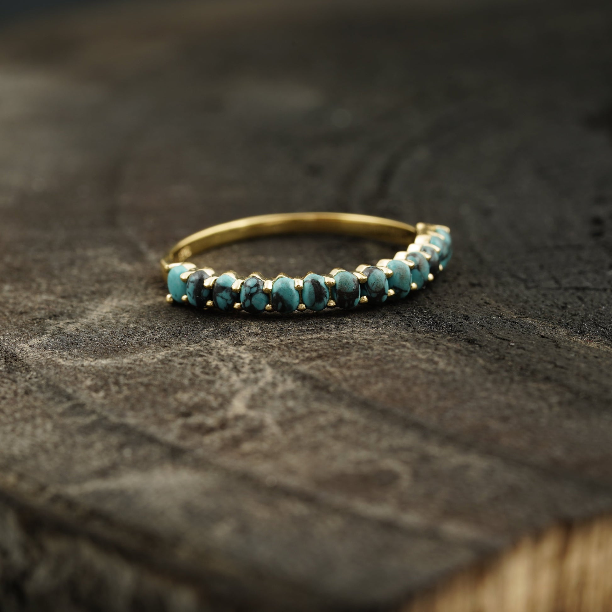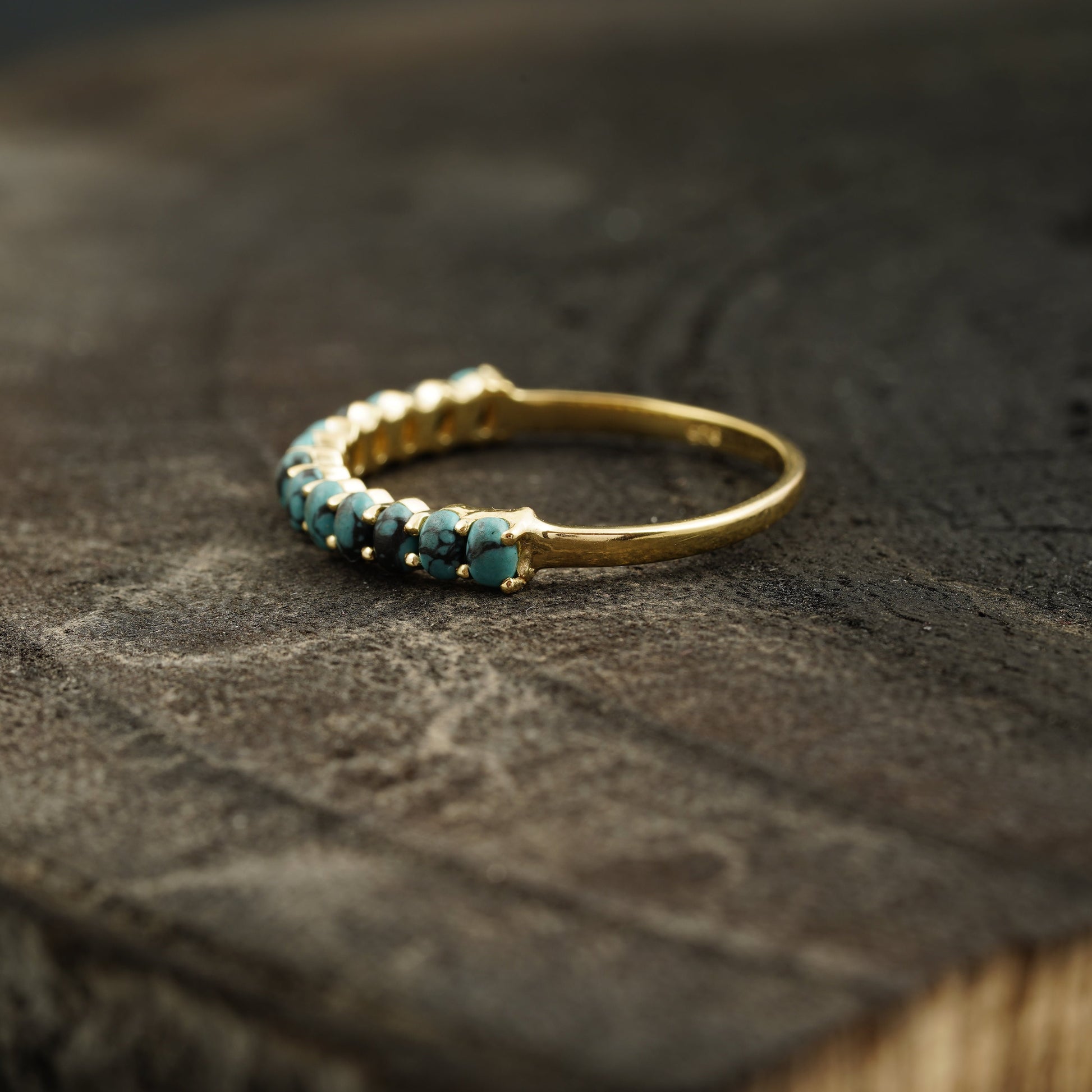 Dainty Stacking Turquoise Wedding Band, Half Eternity Band, 925 Sterling Silver, Turquoise Jewelry, Gift For Her, Promise Ring