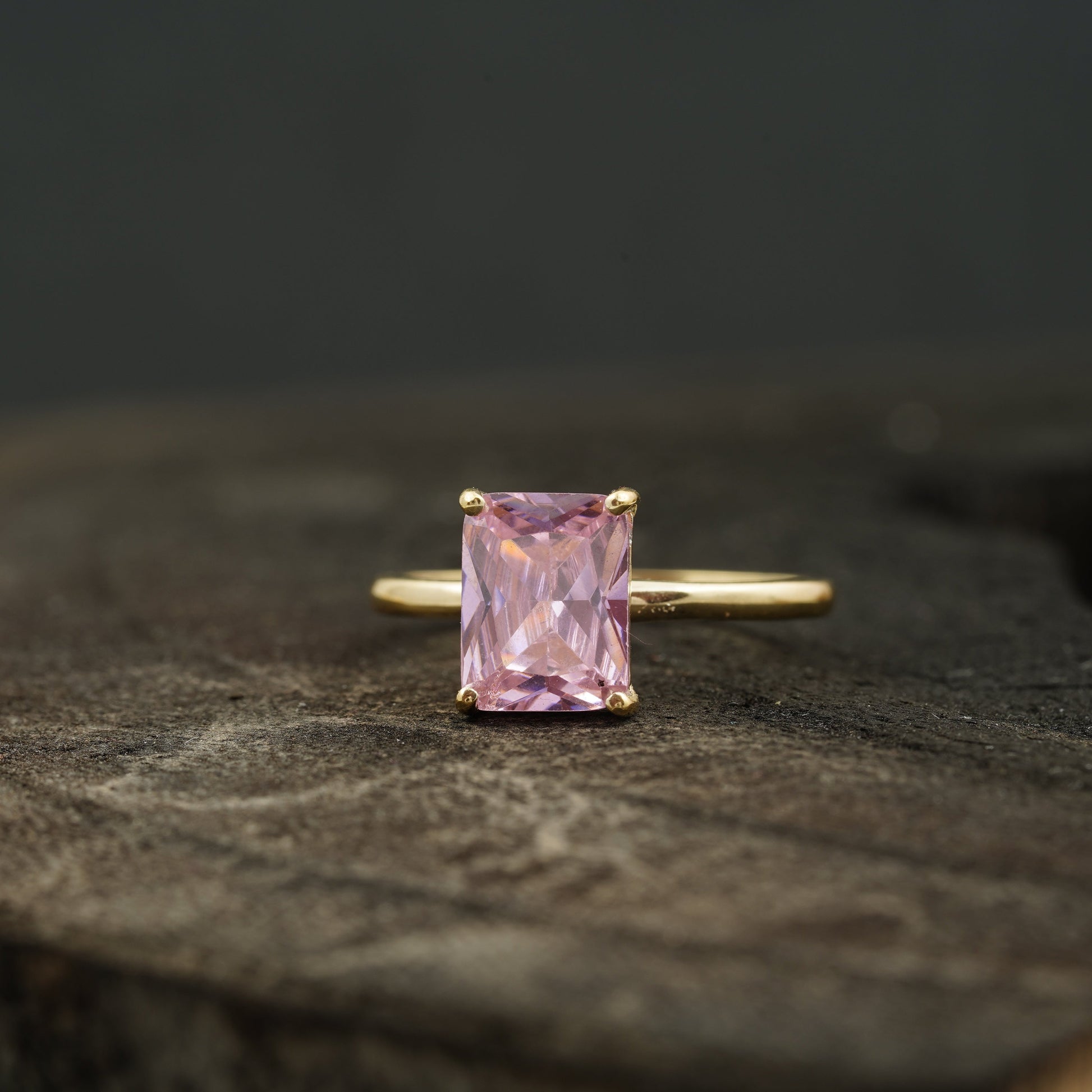 Buy Emerald Cut Pink Sapphire 14k Solid Gold Engagement Ring Gift For Love & Diamond, Fashion & Traditional Jewellery Online