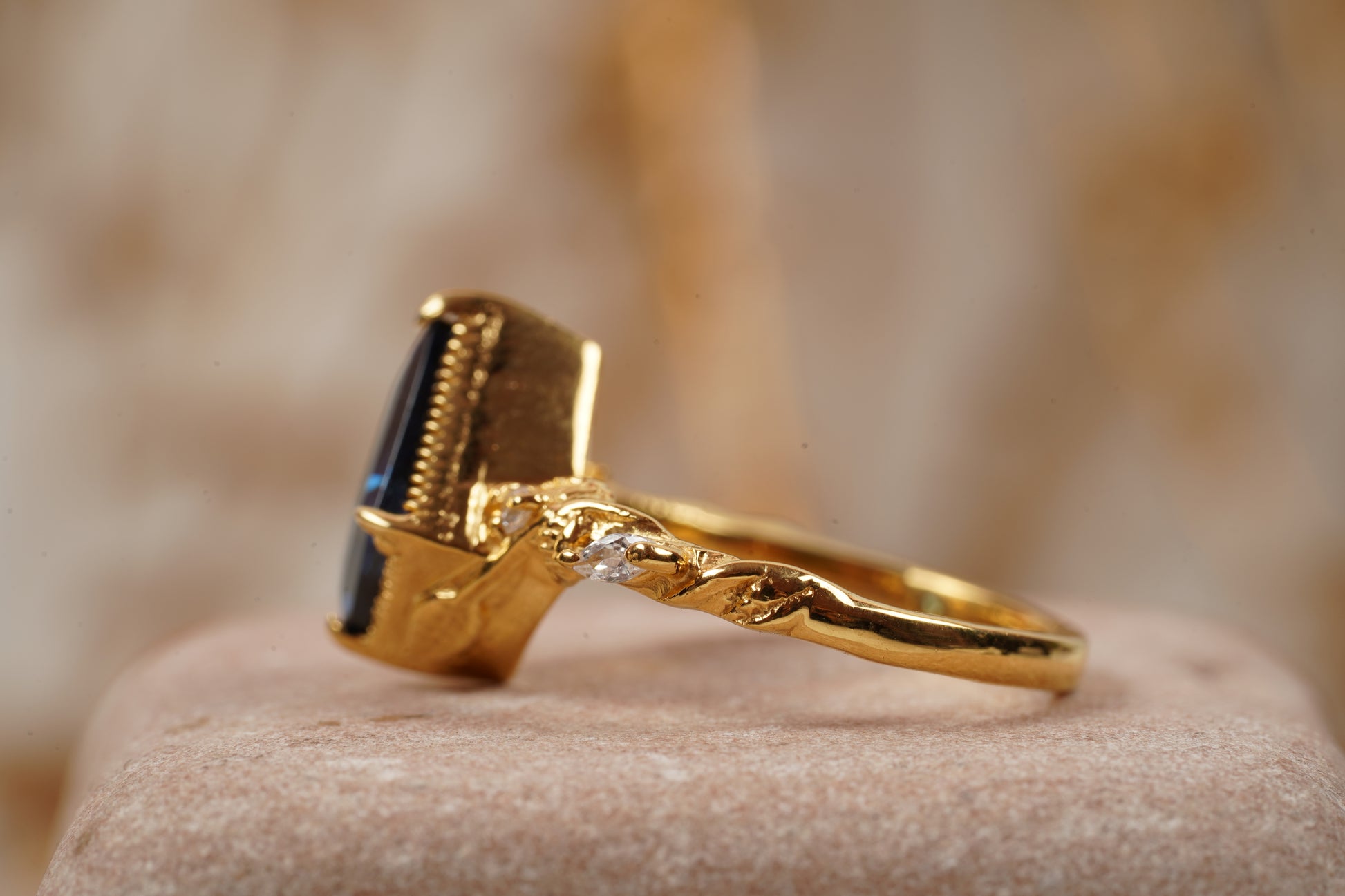 Sapphire Ring 925 Sterling Silver Ring 18K Gold Plated Natural Gemstone Ring Handmade Jewelry Rings.