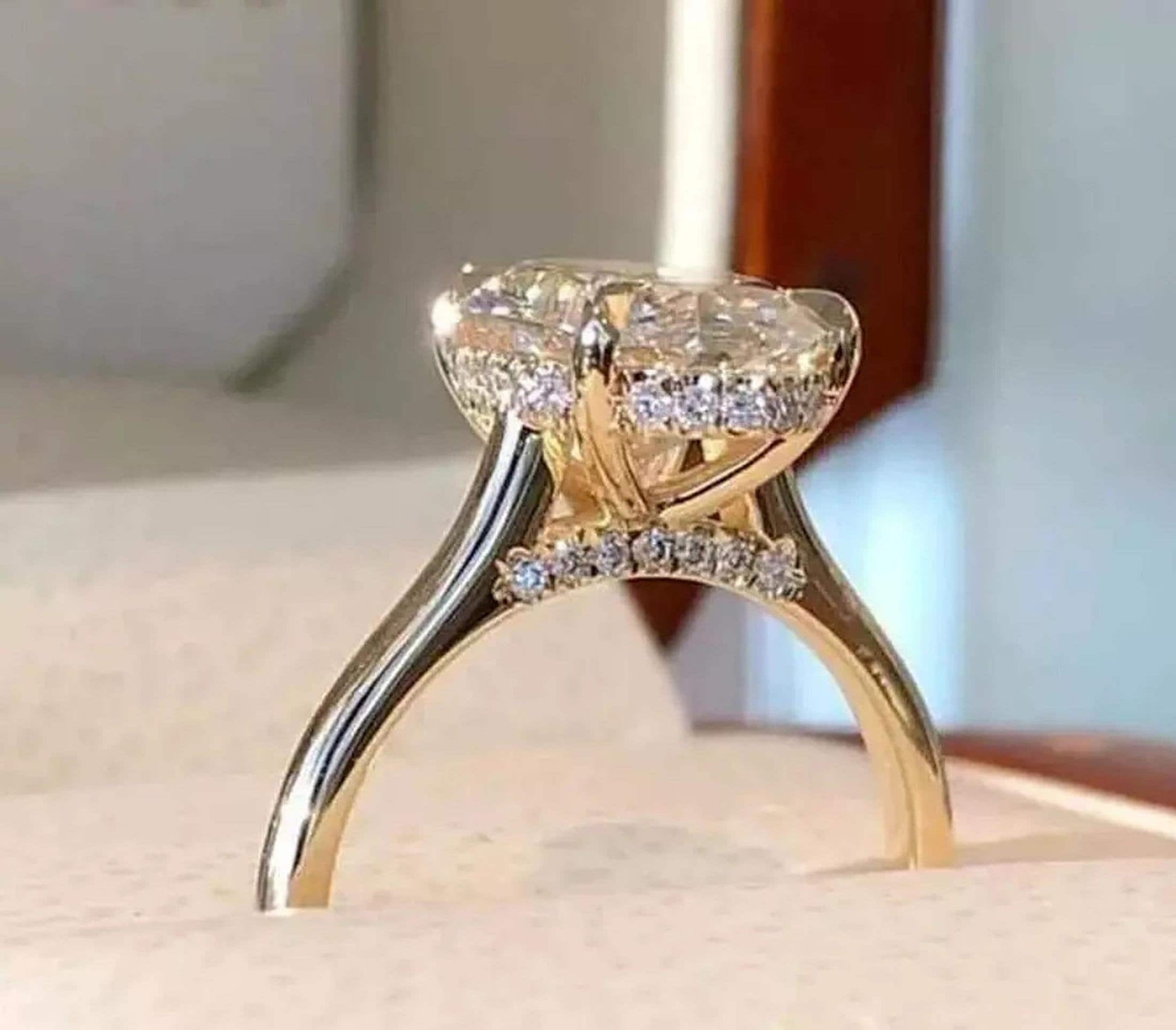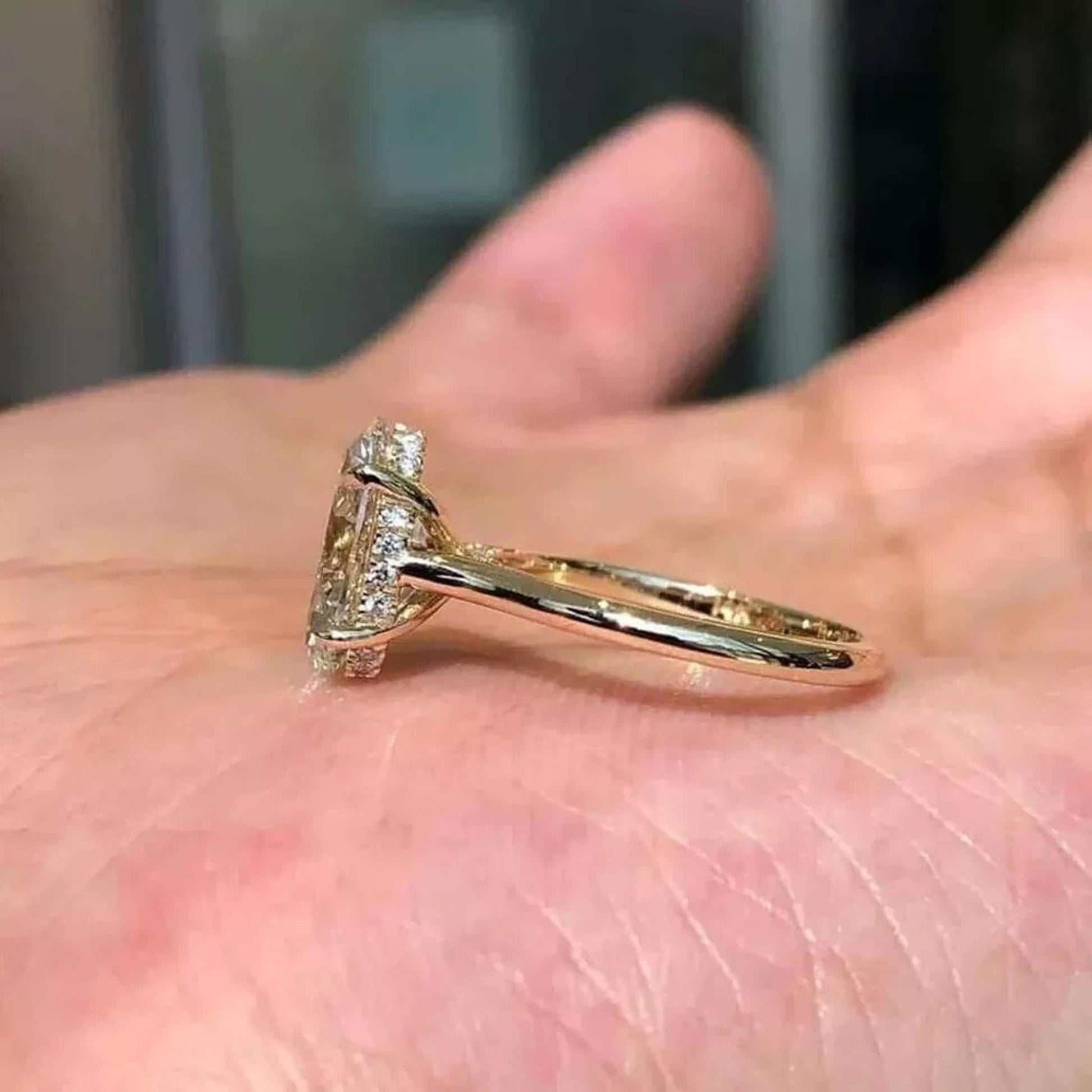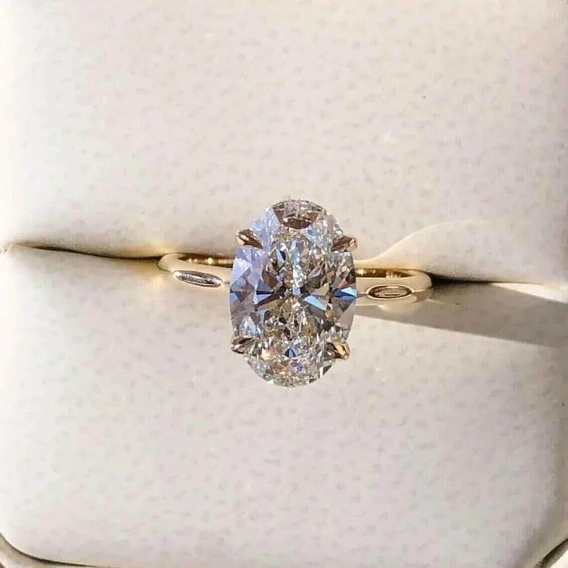 Oval Cut Moissanite Ring Daisy Floral Ring 14k Gold Over Anniversary Ring Simulated Solitaire Ring Propose Ring For Her