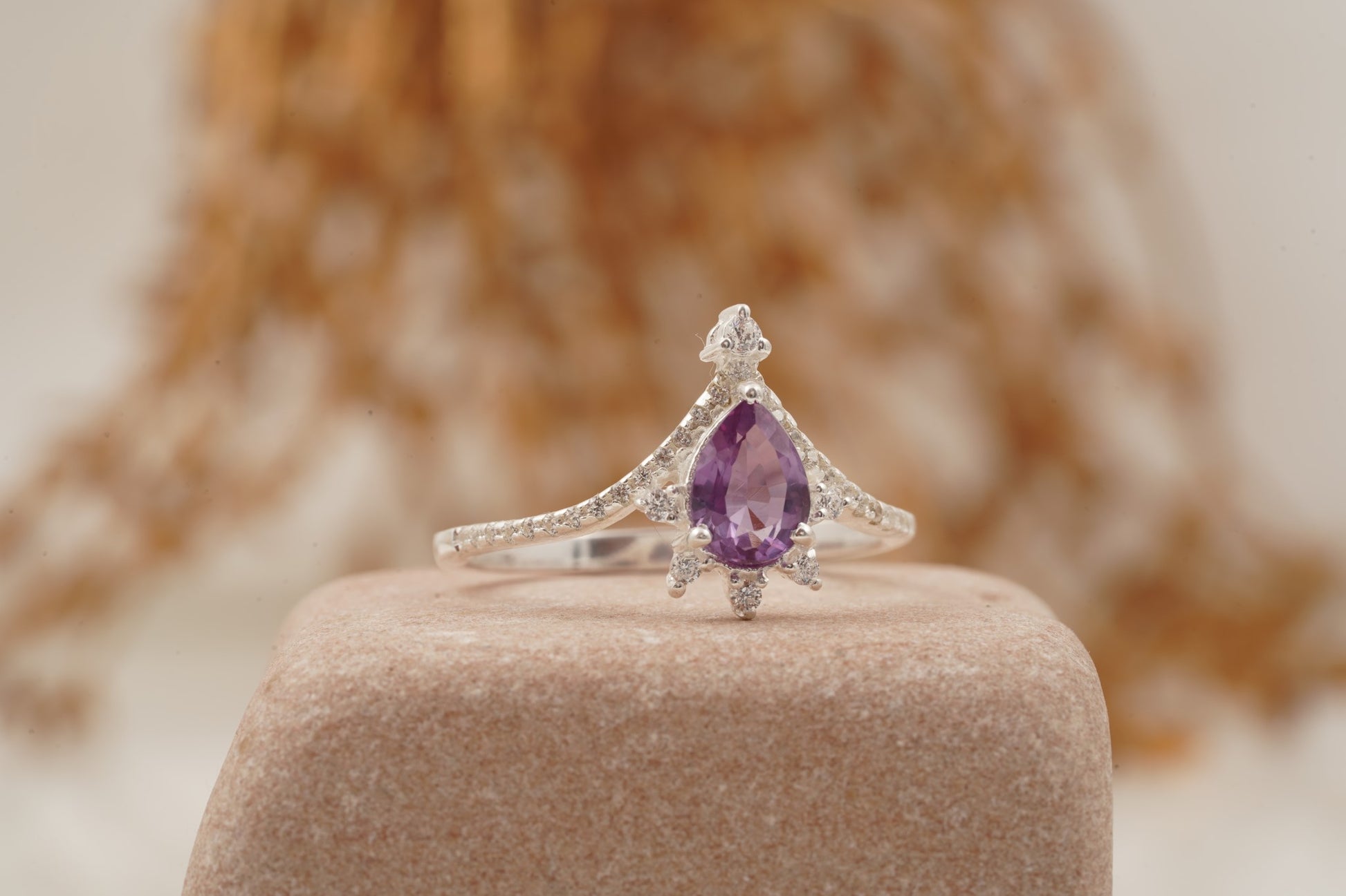 Buy Pear Cut Alexandrite Wedding Band Stacking Diamond Curved Ring. Explore Collection is available in different materials Rose Gold, 925 Silver, Yellow Gold And White Gold.