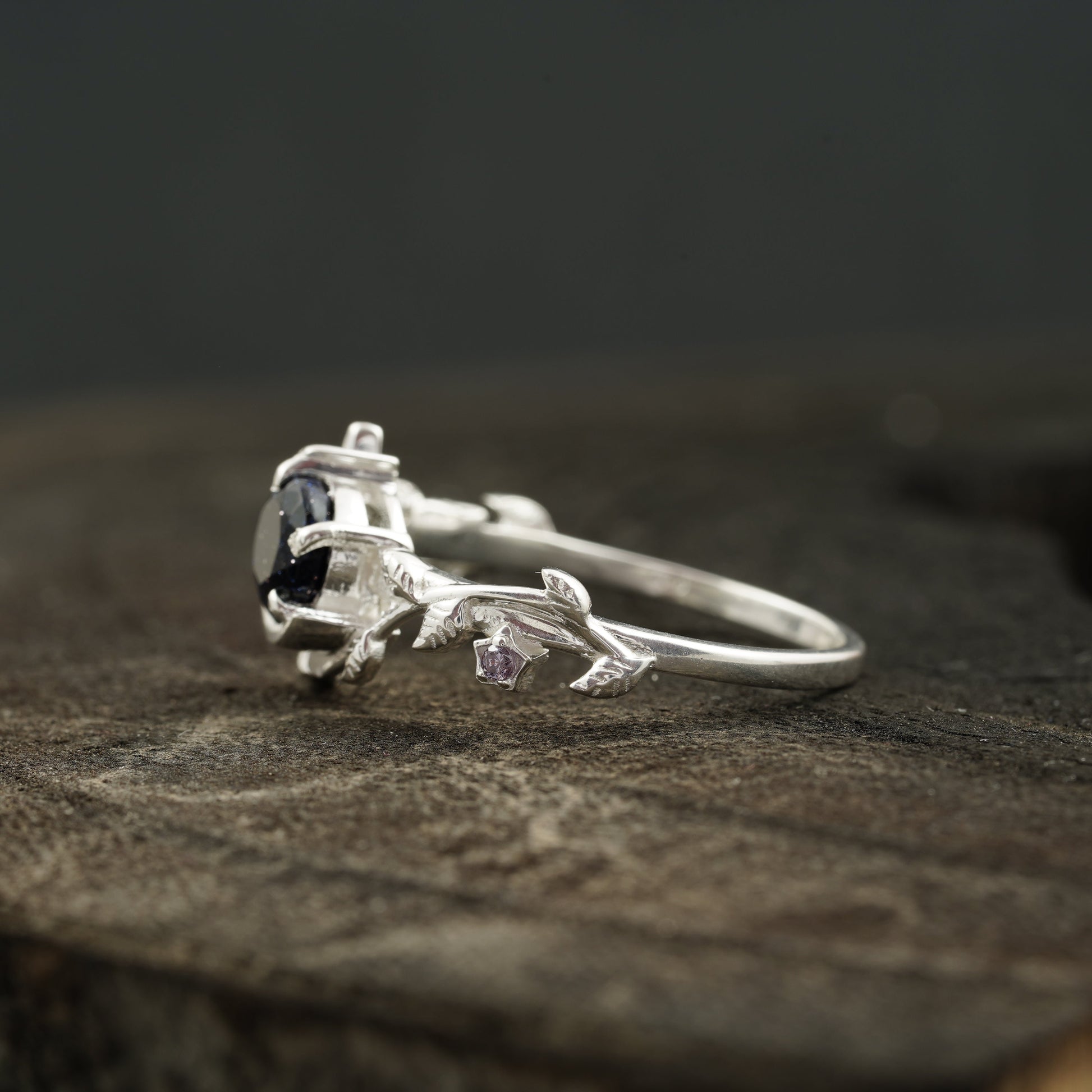 Blue Sandstone Leaf Diamond Band Engagement Ring | Sterling Silver
