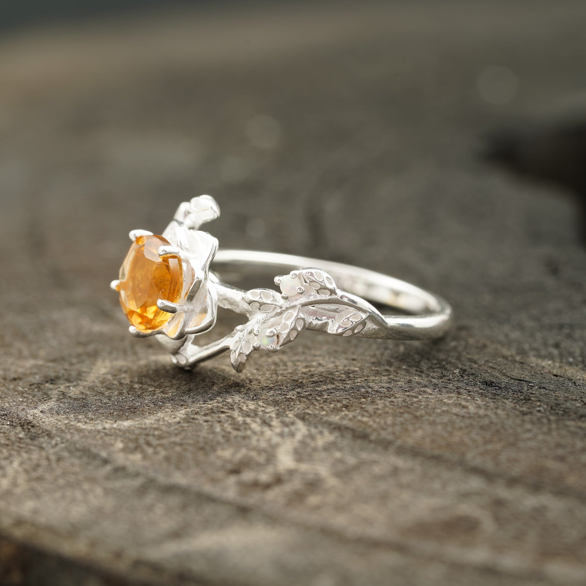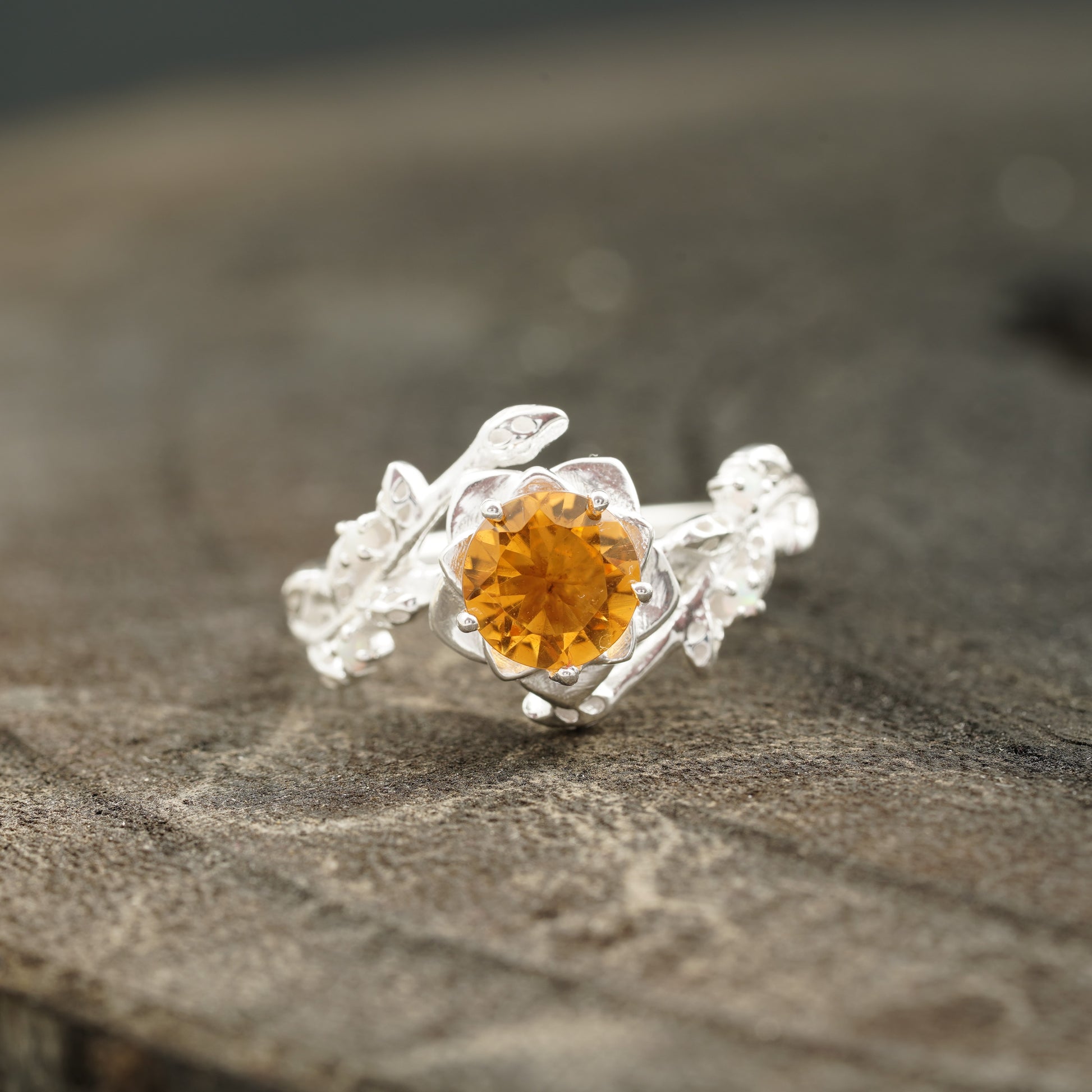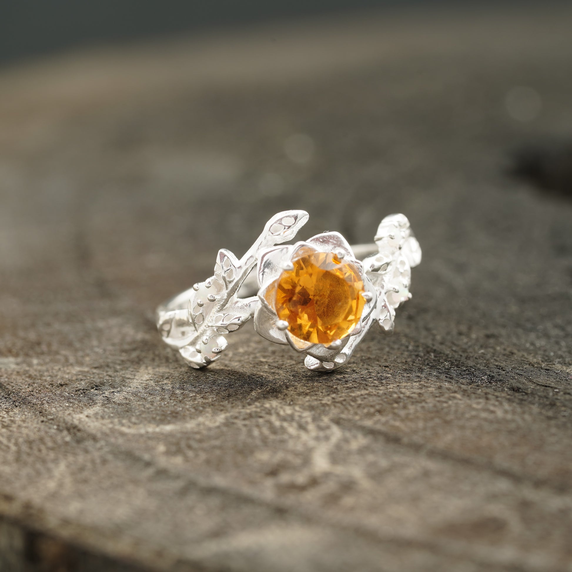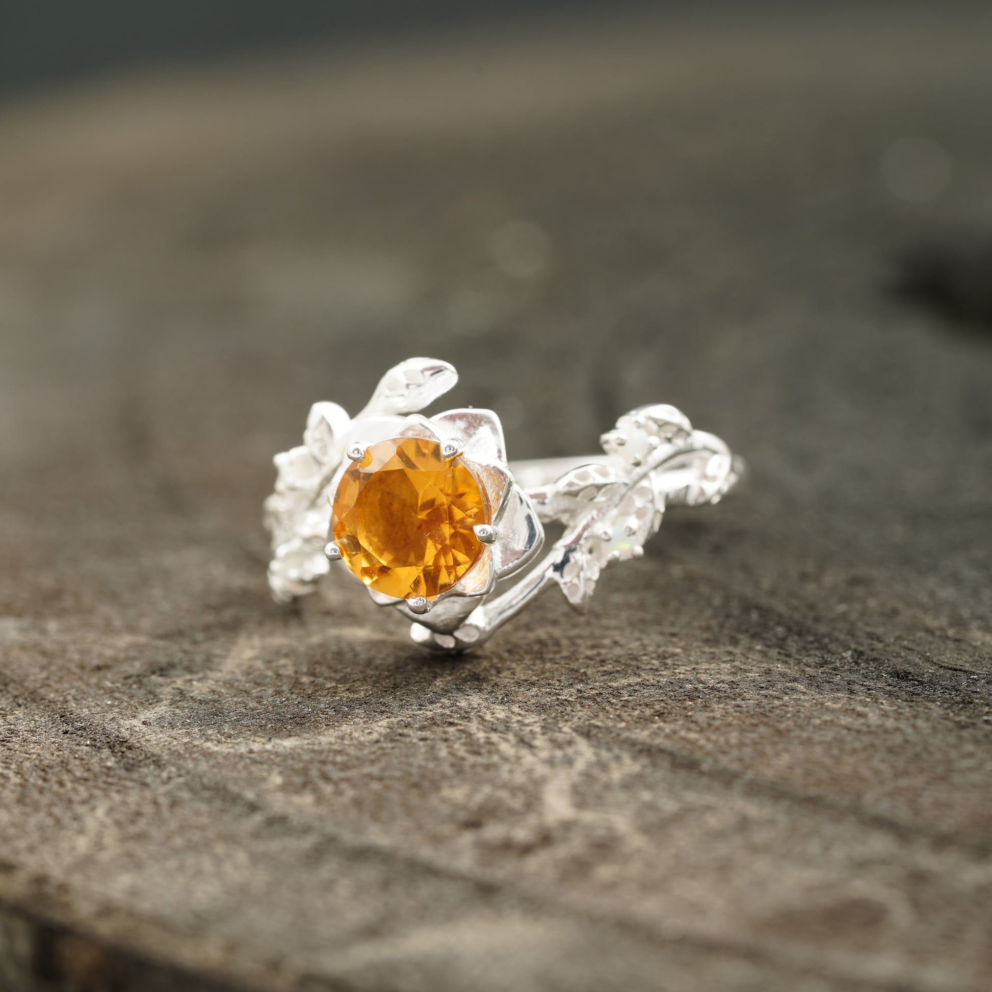 Buy Nature Inspired Leaf Ring Round Cut Yellow Citrine Engagement Ring, Solitaire Ring, Sterling Silver, Fashion & Traditional Jewellery Online