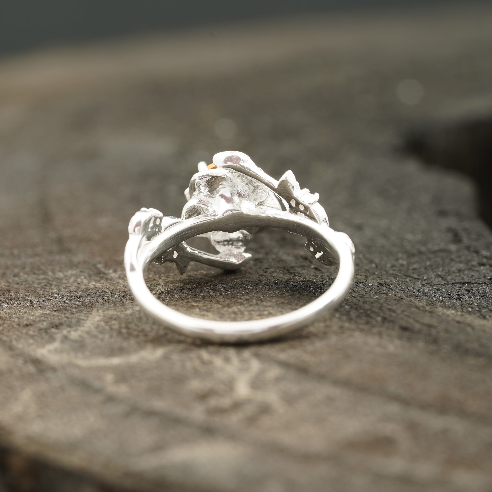 Round Citrine Leaf Engagement Ring | Nature-Inspired 925 Silver